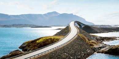 🏞️ The Atlantic Road, one of the most scenic drives in the world. Stop at: Skjolshomen Parking & Lyngholmen Parking for breathtaking ocean views.